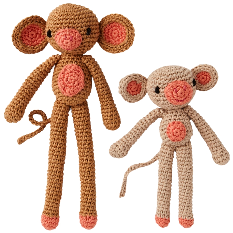 - Le kit contient tout ce qu'il faut pour crocheter un petit et un grand singe