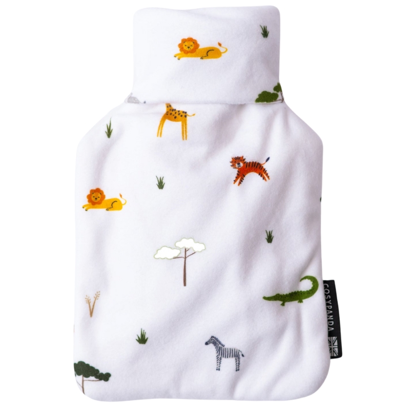 Cette jolie bouillotte est fabriquée à la main en Grande-Bretagne. Confectionnée en coton naturel imprimé safari avec un col roulé, elle conjugue confort et élégance. Irrésistiblement douce, la bouillotte safari vous procurera aussi la chaleur idéale pour vous détendre pendant la saison froide.