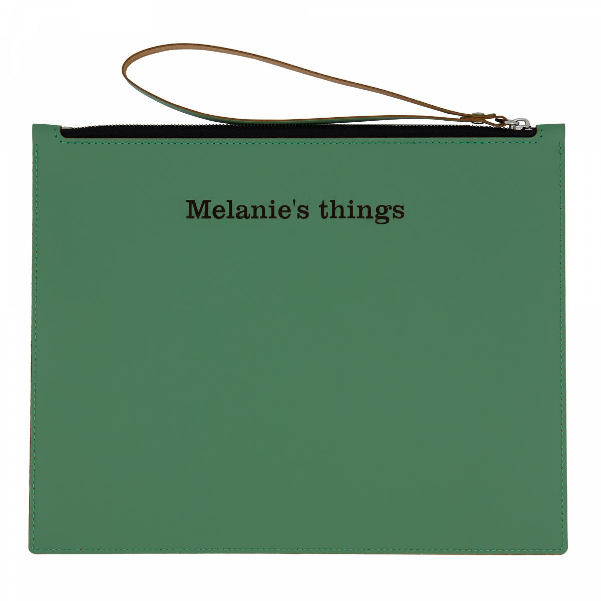 Pochette zippée en cuir personnalisable verte