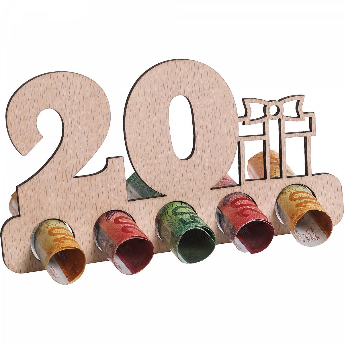 Pour souhaiter son 20ᵉ anniversaire à quelqu’un, essayez quelque chose de différent ! Ce joli portant en bois permet d’y placer l’argent que l’on souhaite offrir. Ce présentoir en bois n'est pas seulement élégant, c'est aussi une manière originale d'offrir de l'argent en cadeau. Un cadeau parfait pour une occasion des plus spéciales et un geste qui restera à coup sûr dans les mémoires !