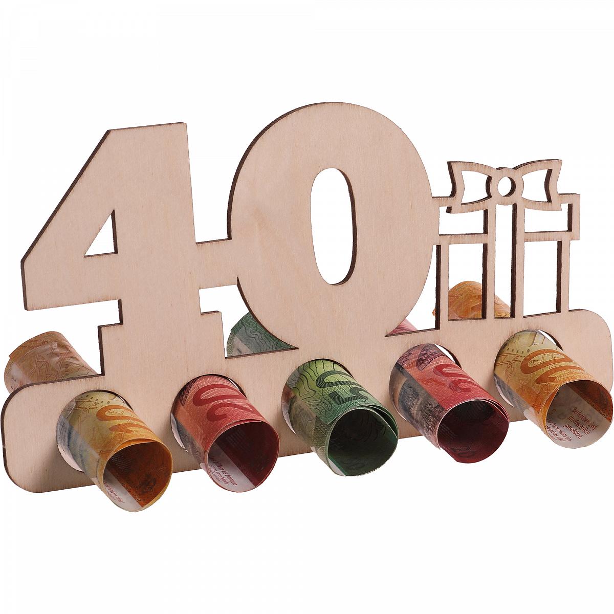 Pour souhaiter son 40ᵉ anniversaire à quelqu’un, essayez quelque chose de différent ! Ce joli portant en bois permet d’y placer l’argent que l’on souhaite offrir. Ce présentoir en bois n'est pas seulement élégant, c'est aussi une manière originale d'offrir de l'argent en cadeau. Un cadeau parfait pour une occasion des plus spéciales et un geste qui restera à coup sûr dans les mémoires !
