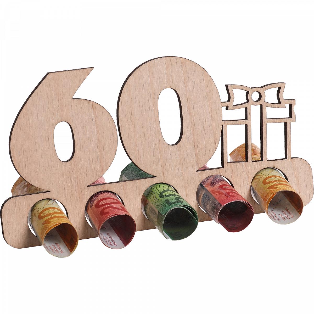 Pour souhaiter son 60ᵉ anniversaire à quelqu’un, essayez quelque chose de différent ! Ce joli portant en bois permet d’y placer l’argent que l’on souhaite offrir. Ce présentoir en bois n'est pas seulement élégant, c'est aussi une manière originale d'offrir de l'argent en cadeau. Un cadeau parfait pour une occasion des plus spéciales et un geste qui restera à coup sûr dans les mémoires !