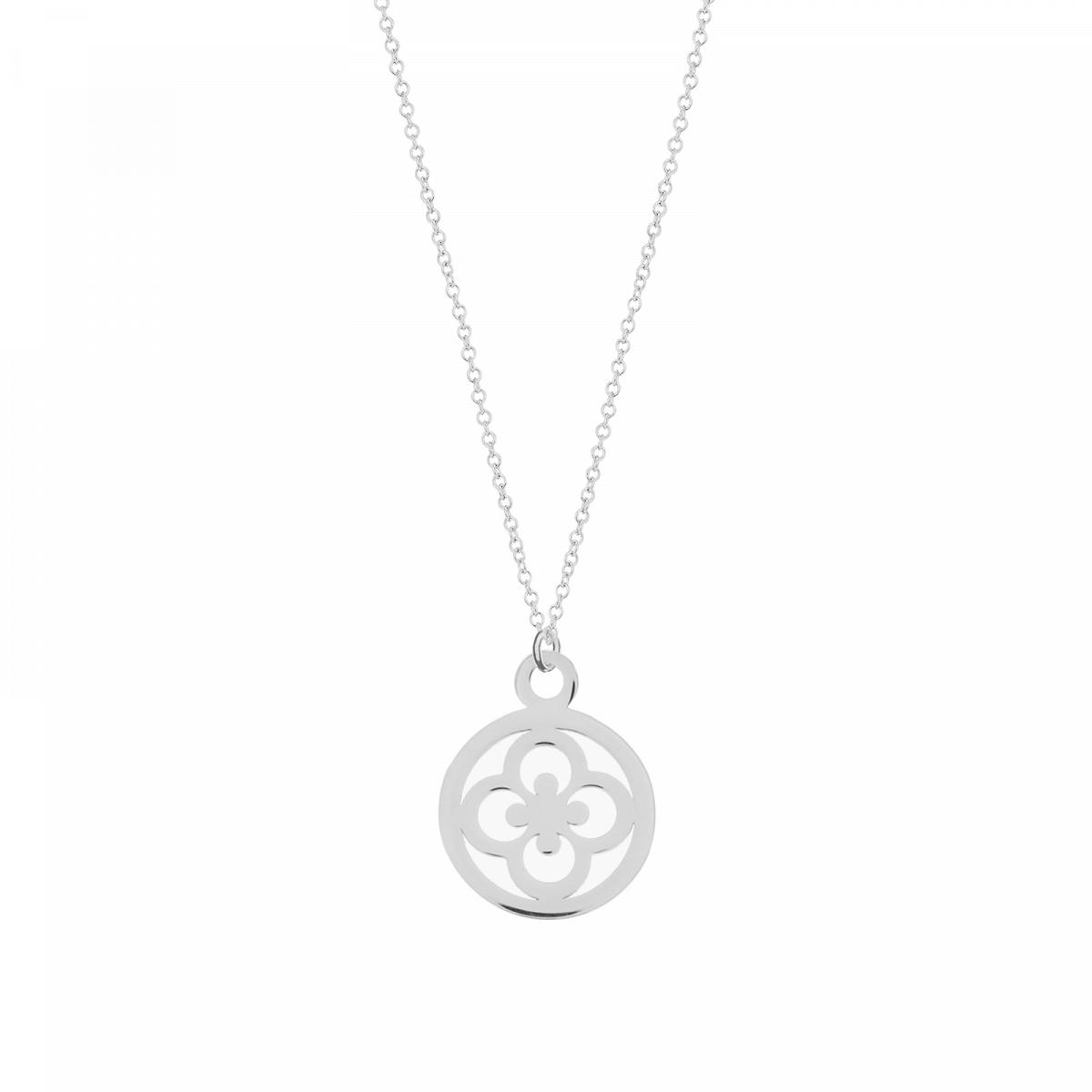 - Délicat collier en or blanc 14 carats avec motif de trèfle stylisé