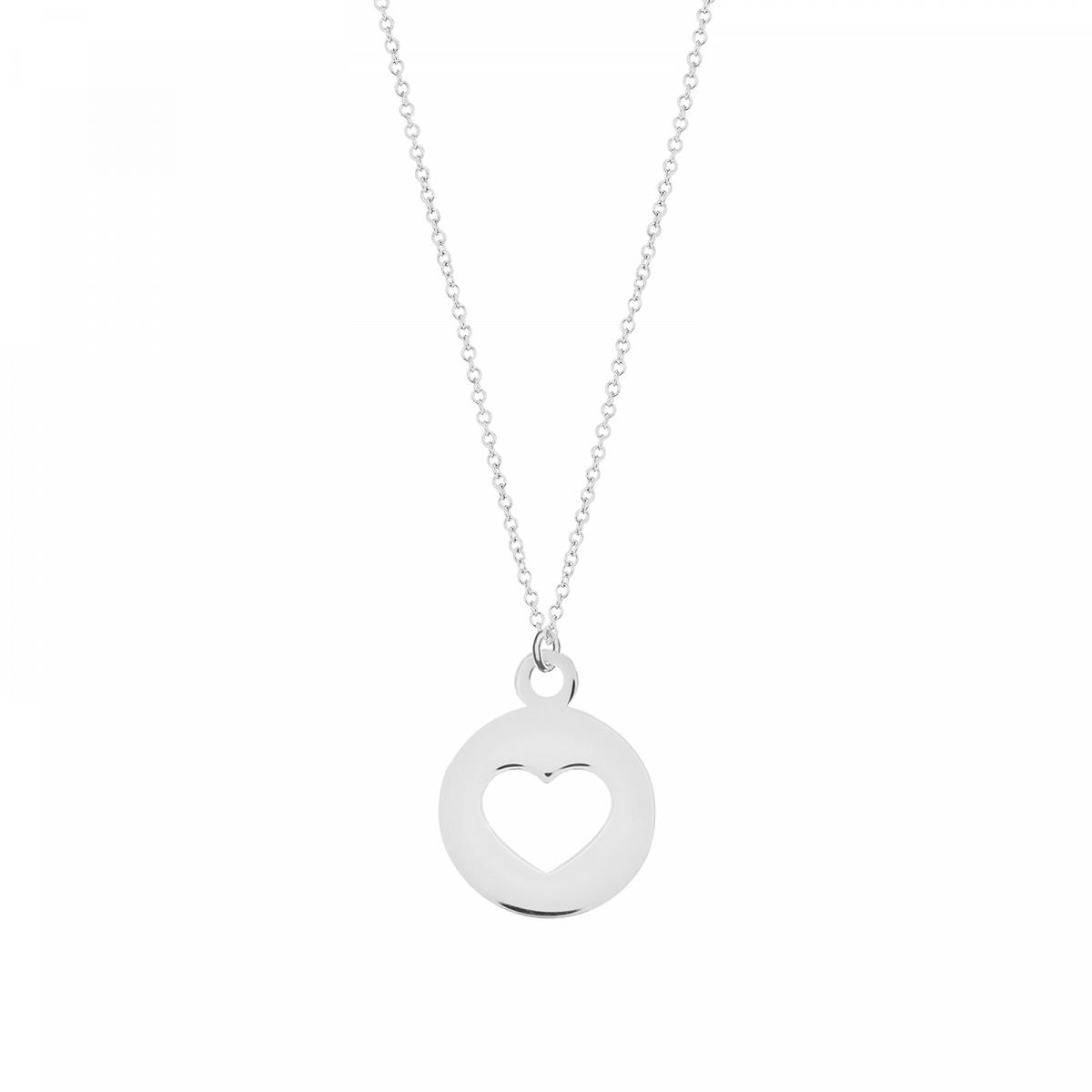 - Délicat collier en or blanc 14 carats avec une forme de cœur au centre du pendentif
