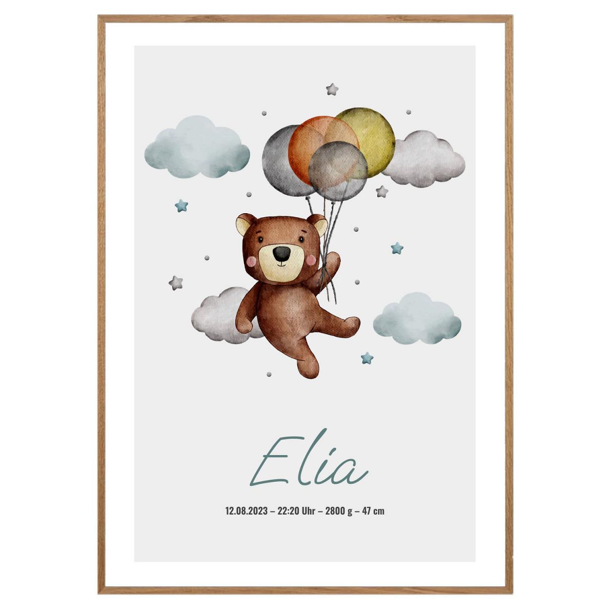 Cette affiche spéciale naissance personnalisable avec son adorable illustration de Bébé Ours en format A3 est le cadeau de naissance parfait. Un charmant poster encadré d’une baguette en chêne naturelle qui ne manquera pas d’attendrir ses destinataires. Une surprise parfaite pour immortaliser ce moment si particulier que représente l’arrivée d’un bébé.