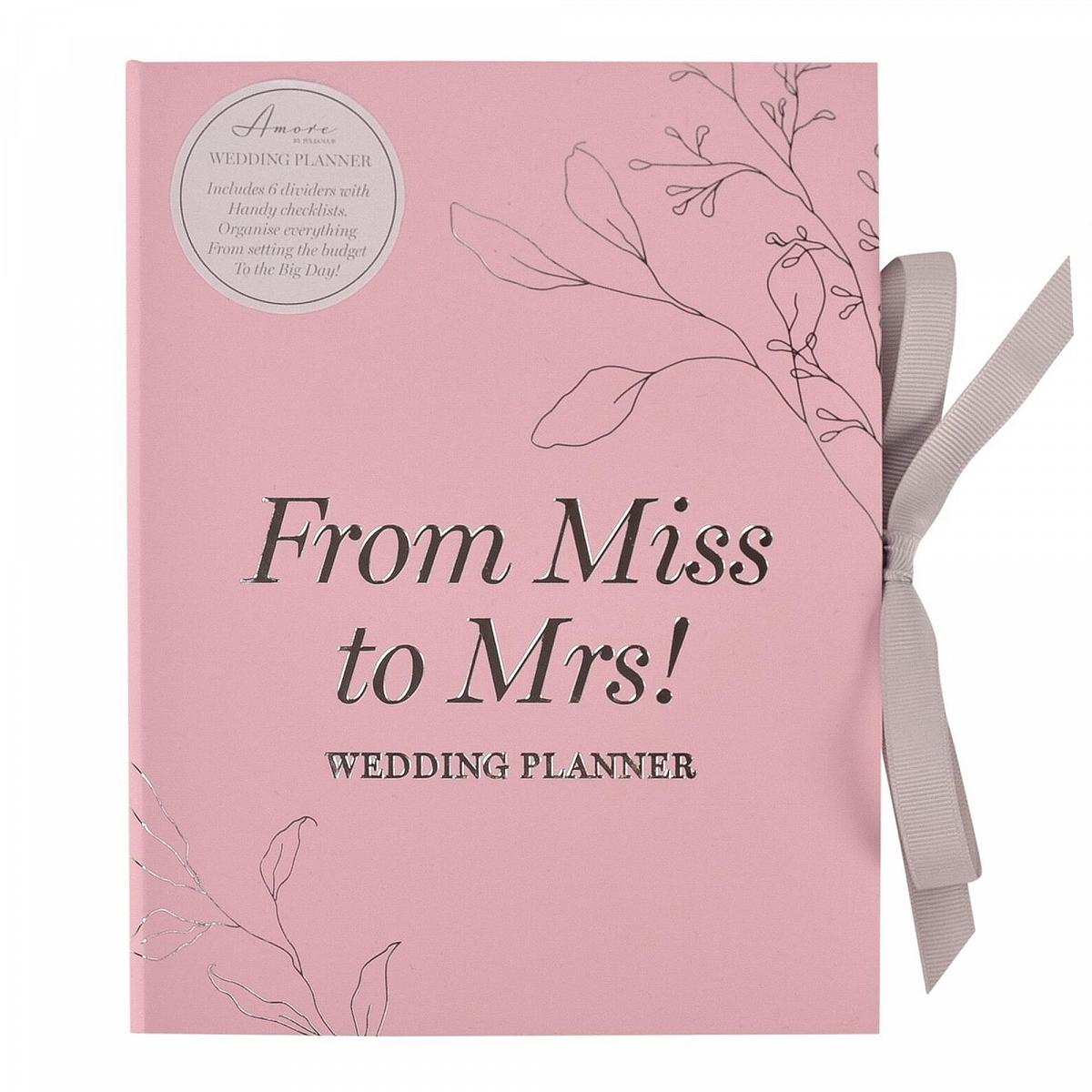 Le charmant planificateur de mariage « Miss To Mrs » en rose tendre est un compagnon soigneusement conçu pour chaque future mariée. Avec de jolis détails argentés et des sections pratiques, il aide à organiser parfaitement le grand jour. Un merveilleux cadeau qui ravira les fiancées et embellira leur attente du mariage.