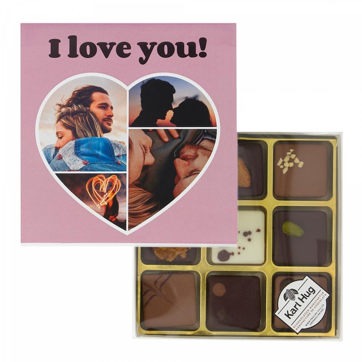 Boîte de chocolats personnalisée 9 pralinés | Collage Cœur
