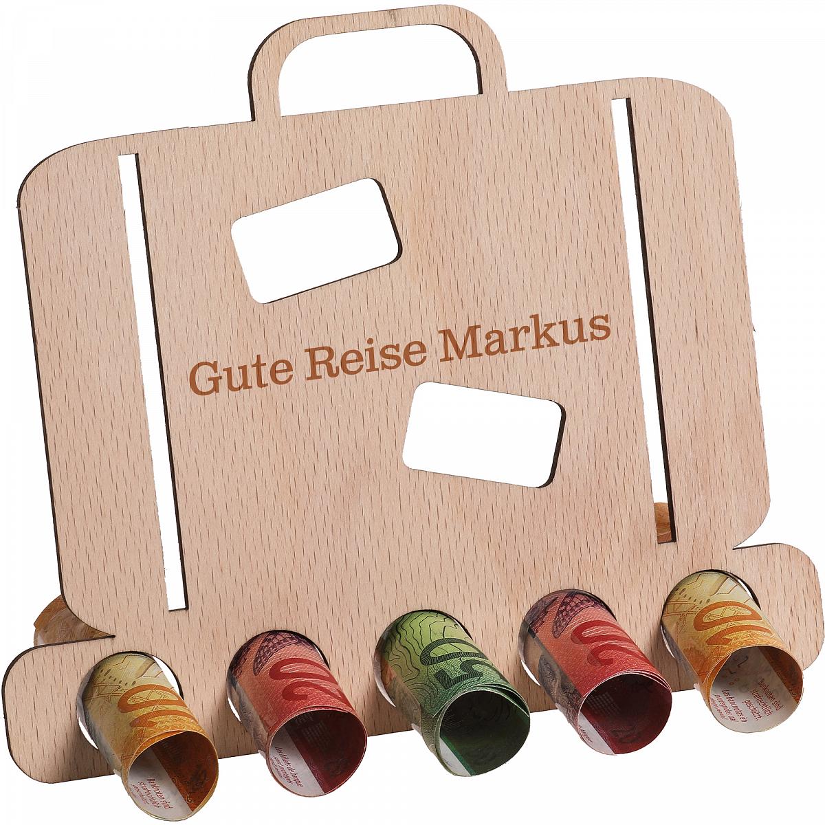 Porte-billets en bois valise personnalisé