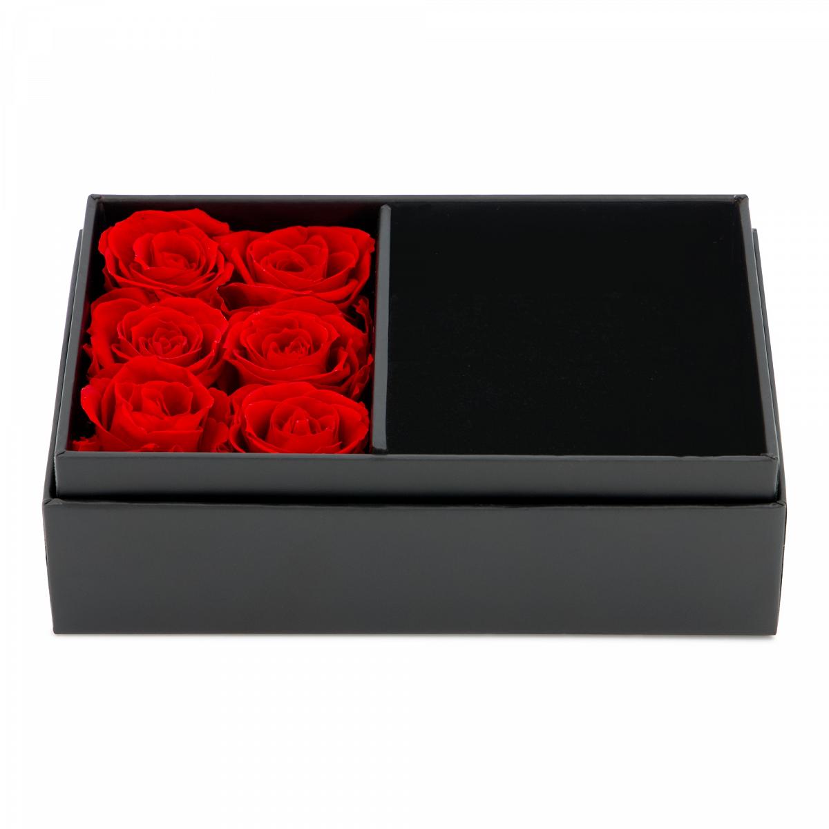 - Contenu : 6 roses conservées et compartiment en velours pour bijoux