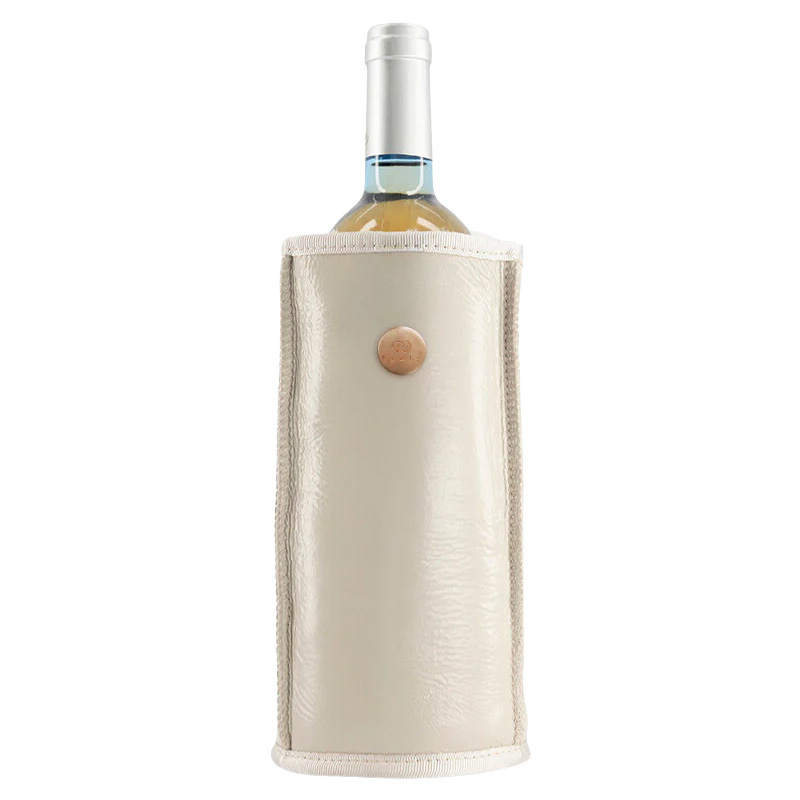 Le refroidisseur de vin Kywie Beige Laqué est un choix élégant pour les amateurs de vin souhaitant rafraîchir leur bouteille avec style et de manière durable. Fabriqué en cuir beige laqué avec une isolation en laine de mouton, il maintient le vin frais pendant plus de deux heures, sans avoir besoin de glace. Son design léger en fait le compagnon idéal pour les déplacements ou un cadeau parfait.