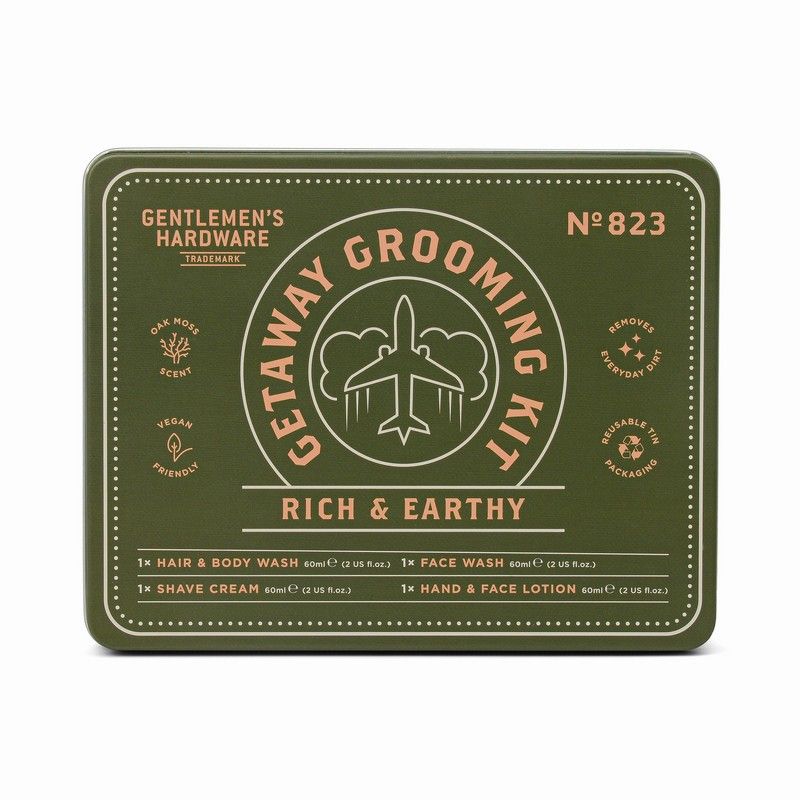 Le Kit de toilettage de voyage de Gentlemen’s Hardware est le compagnon idéal pour les voyages ou en déplacement. Cet ensemble compact contient tout ce dont vous avez besoin pour une apparence soignée : gel douche 3-en-1, crème à raser, nettoyant pour le visage et lotion pour les mains et le visage – le tout dans une boîte en métal réutilisable pratique. Avec des ingrédients végétaliens et un parfum apaisant de mousse de chêne, c'est le cadeau parfait pour les hommes soignés.