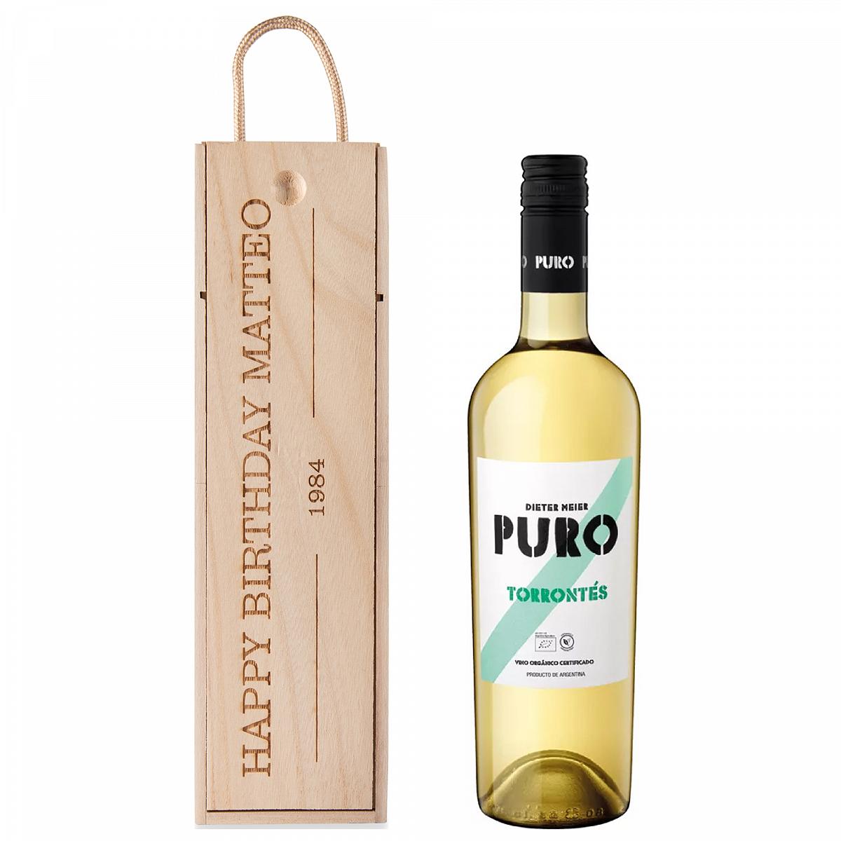 Coffret à vin personnalisable avec PURO Torrontés 75 cl