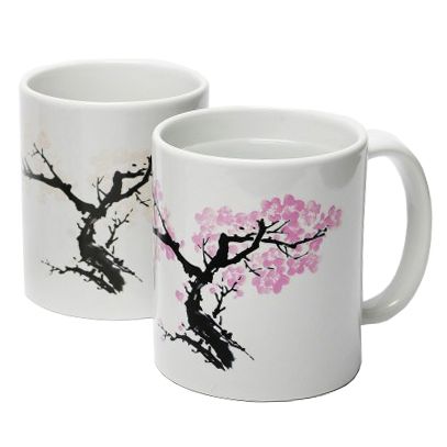 - Les fleurs de cerisiers apparaissent quand la tasse est chaude