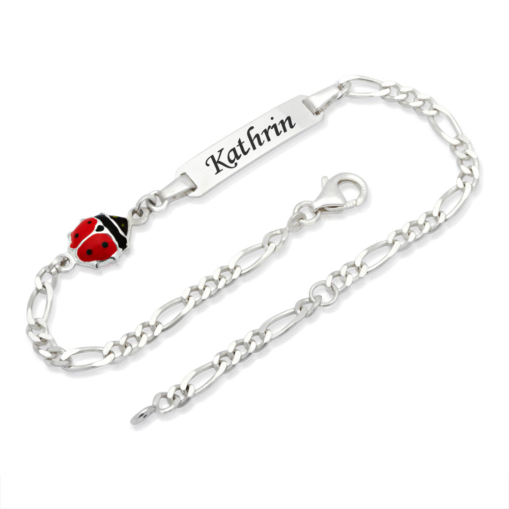 Le bracelet pour enfant Eva est en argent 925 avec une adorable coccinelle. Il est parfait comme cadeau de naissance ou de baptême. Sur la plaque de gravure, il est possible de graver le nom de l'enfant qui reçoit le cadeau, ce qui fait du bracelet 925 argent avec coccinelle pour enfants un cadeau unique.