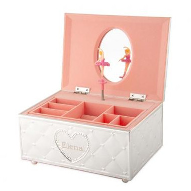 Ce grand coffret à bijoux est l'enchantement des petites filles! Une boîte à musique avec une ravissante ballerine, qui danse sur la mélodie de "Pour Elise". Un écrin pour ses trésors et ses rêves, personnalisé à Son nom!