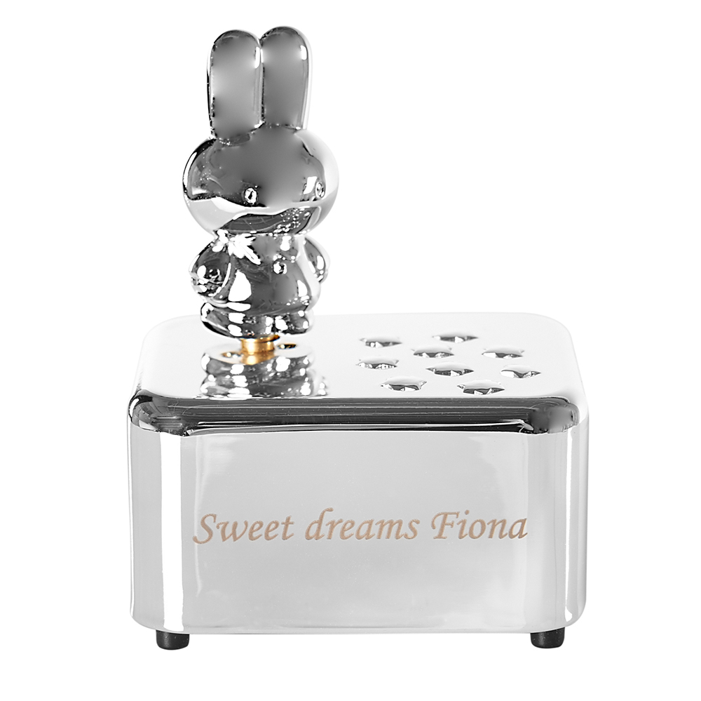Plaquée argent, votre boîte à musique Miffy est un cadeau intemporel par son concept, touchant dans le moindre de ses détails et c'est votre personnalisation qui lui apporte la touche ultime.