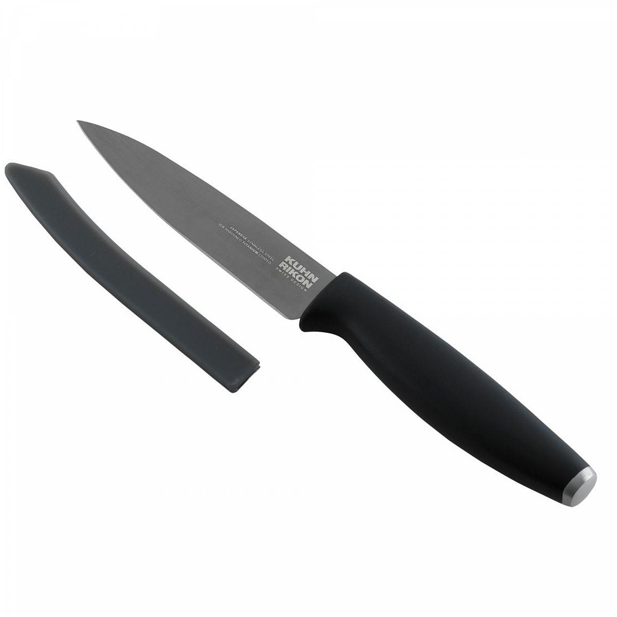 Ce couteau d’office polyvalent de Kuhn Rikon est une bonne idée de cadeau utile pour un amateur de cuisine. Les designers ont apporté beaucoup de soin à la conception du manche. « La poignée du couteau Colori Titanium est assurément la plus aboutie des collections de couteaux signées Kuhn Rikon », note la designer Valeria Hiltenbrand. La forme ergonomique et le revêtement antidérapant du manche offrent en effet une excellente prise en main.