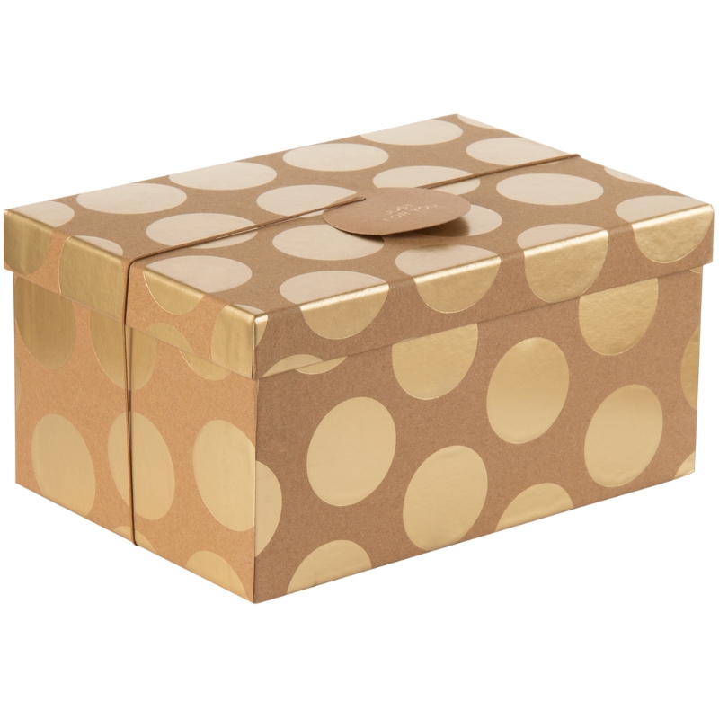 La Boîte-cadeau Stewo avec ses grands pois dorés et brillants est l'emballage parfait pour les occasions spéciales. Son design raffiné confère une note luxueuse à chaque cadeau et fait du déballage une expérience particulière.