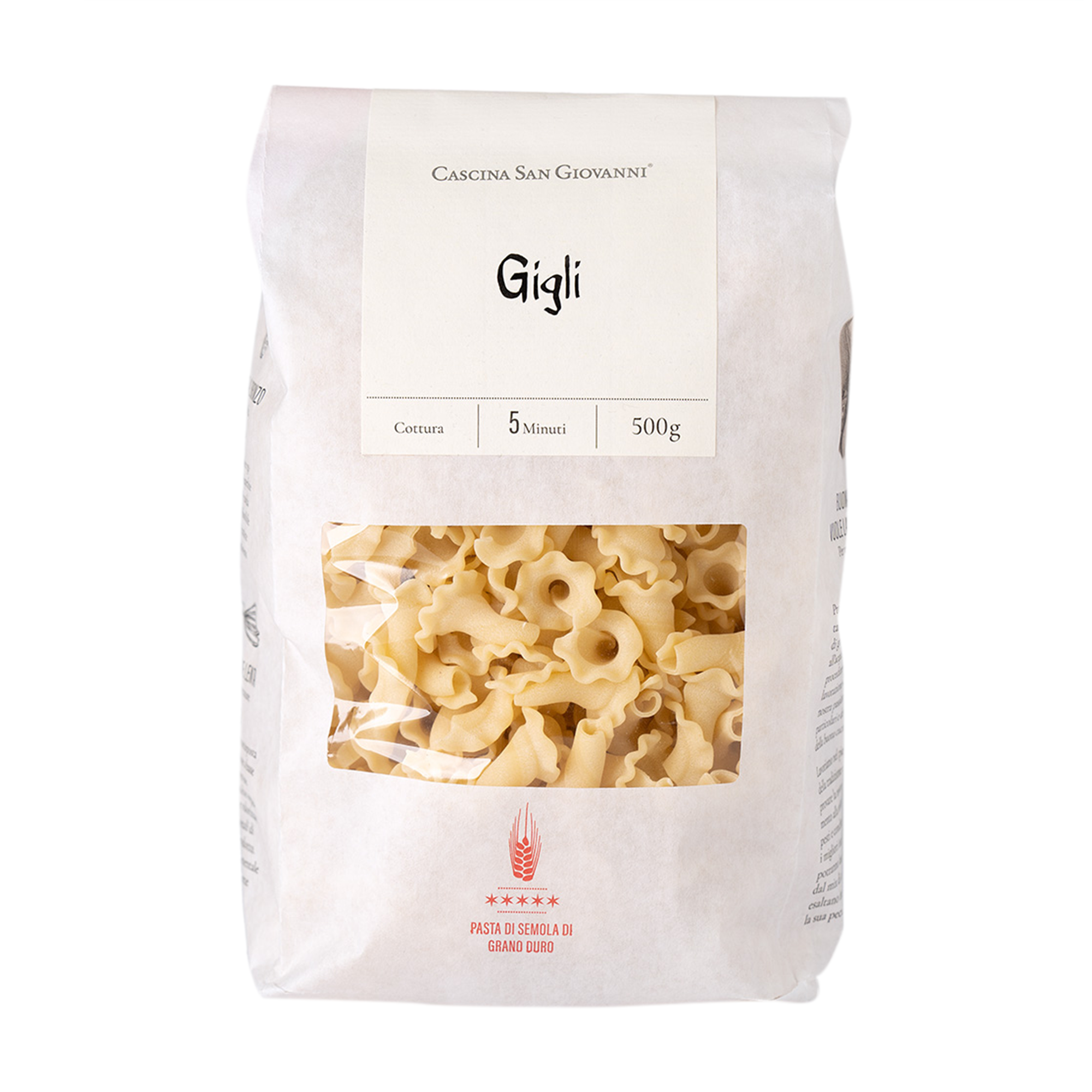• Gigli de qualité supérieure à base de semoule de blé dur italienne et d'eau de source