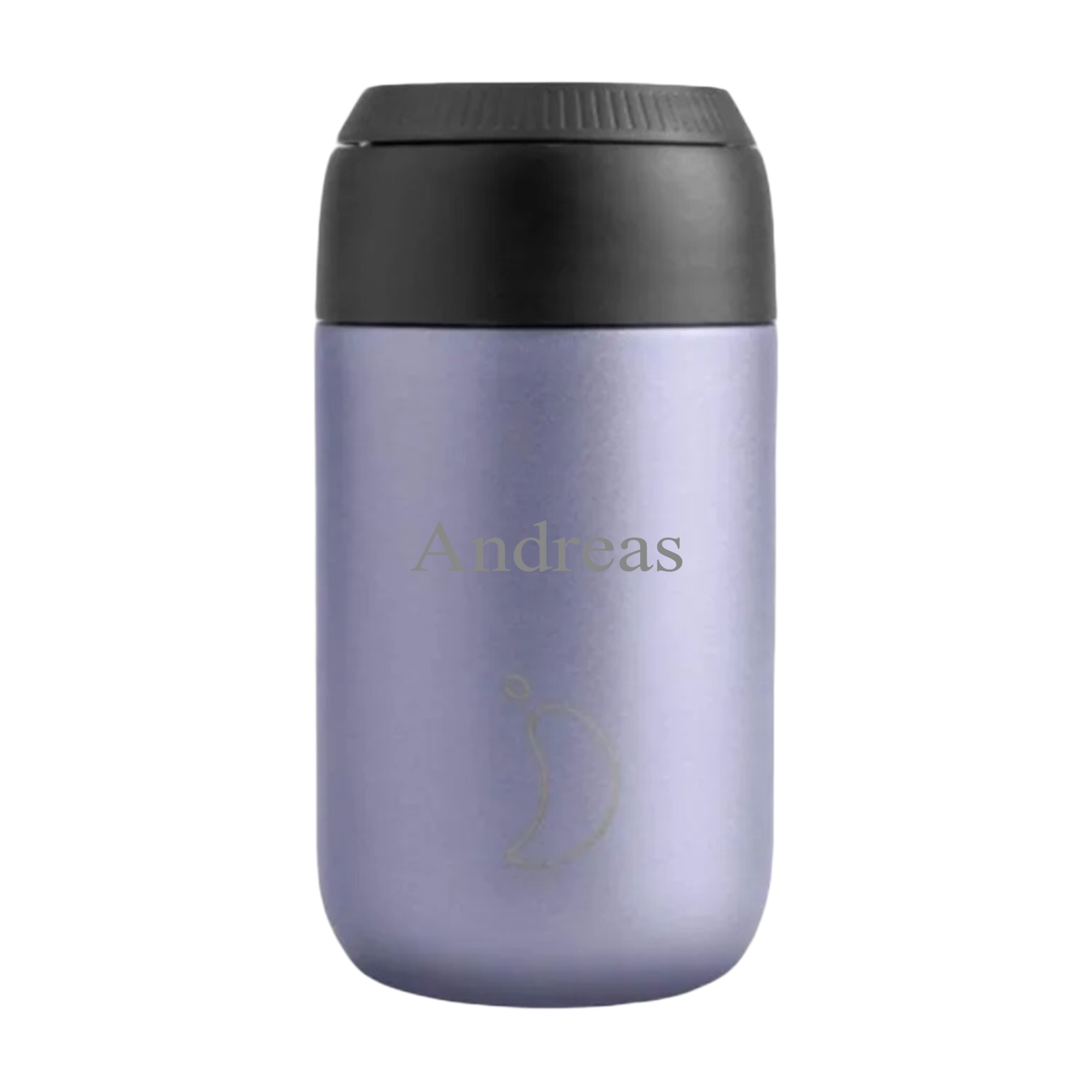 La nouvelle tasse à café Chilly's Bottle Series 2 garde tes boissons chaudes jusqu'à 4 heures et évite les fuites désagréables. Elle est équipée d'un mécanisme de fermeture rotatif et d'une technologie à double paroi pour une expérience vraiment unique. Tu peux la personnaliser et y inscrire jusqu'à 10 caractères. Son design élégant en fait de plus un accessoire vraiment stylé à emporter partout !