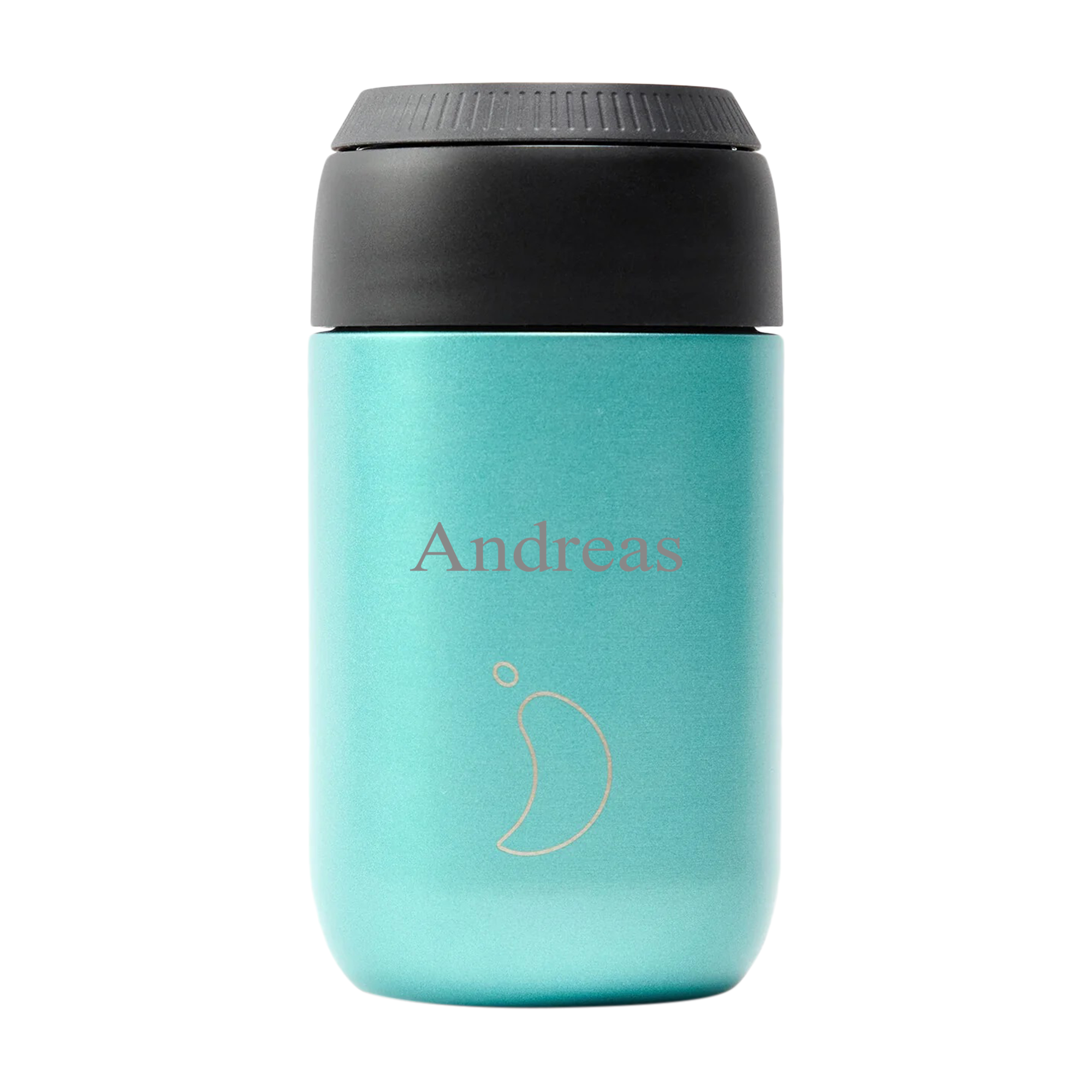 La nouvelle tasse à café Chilly's Bottle Series 2 garde tes boissons chaudes jusqu'à 4 heures et évite les fuites désagréables. Elle est équipée d'un mécanisme de fermeture rotatif et d'une technologie à double paroi pour une expérience vraiment unique. Tu peux la personnaliser et y inscrire jusqu'à 10 caractères. Son design élégant en fait de plus un accessoire vraiment stylé à emporter partout !