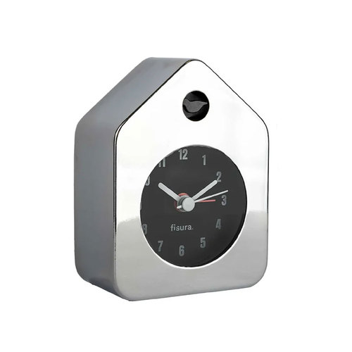 Design : réveil moderne en forme de maison avec finition chromée brillante