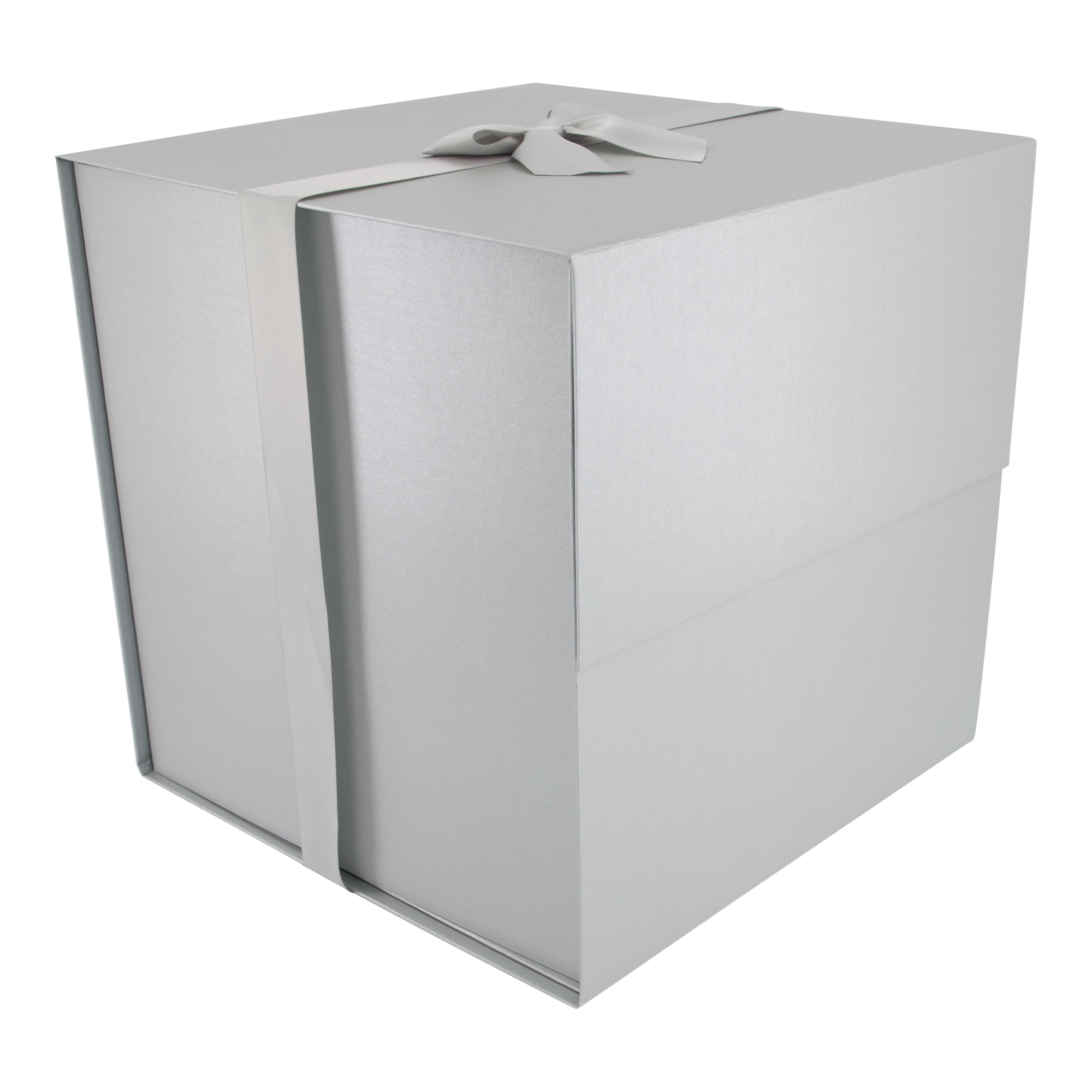 Boîte cadeau table magique avec ruban Cube 28 silver