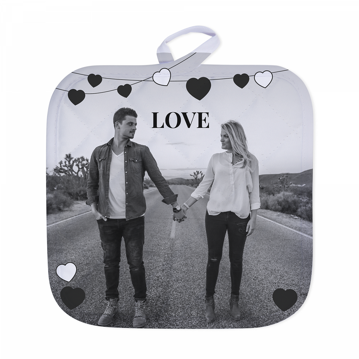 Gant de cuisine personnalisable avec photo | guirlande de cœurs