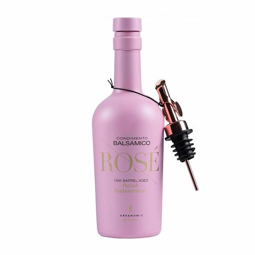 Le Greenomic Rose Condimento Balsamico est un vinaigre balsamique particulièrement raffiné, élaboré à partir de moût de raisin de haute qualité et de vinaigre de vin. Avec sa délicate nuance rosée et son goût équilibré et fruité, ce balsamique est parfait pour les salades fines, les plats de légumes et pour sublimer les desserts. La longue maturation en fûts de bois révèle une profondeur aromatique et assure une saveur harmonieuse. Emballé dans une élégante bouteille en céramique, il protège l’huile d’olive des rayons UV et devient un élément décoratif dans chaque cuisine.