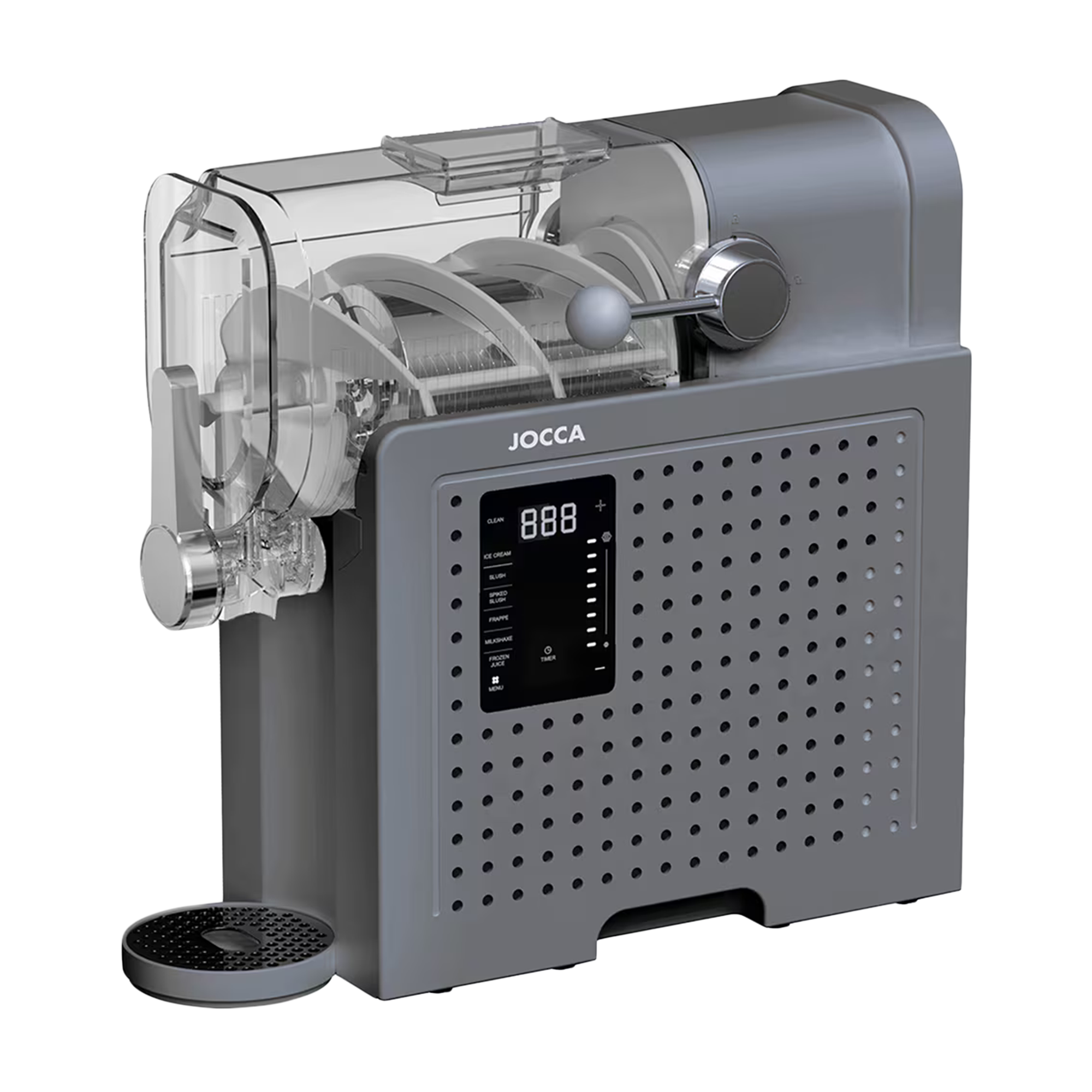 Découvre la puissante sorbetière Slushy pour les smoothies, les frappés, les granizados et les glaces - parfaite pour les boissons et les desserts créatifs. Avec une capacité maximale de 1,6 litre, tu peux préparer de grandes quantités, tandis que le récipient en ABS transparent et amovible facilite la préparation et le nettoyage. Les lames amovibles du mixeur en POM passent au lave-vaisselle et garantissent un résultat homogène.