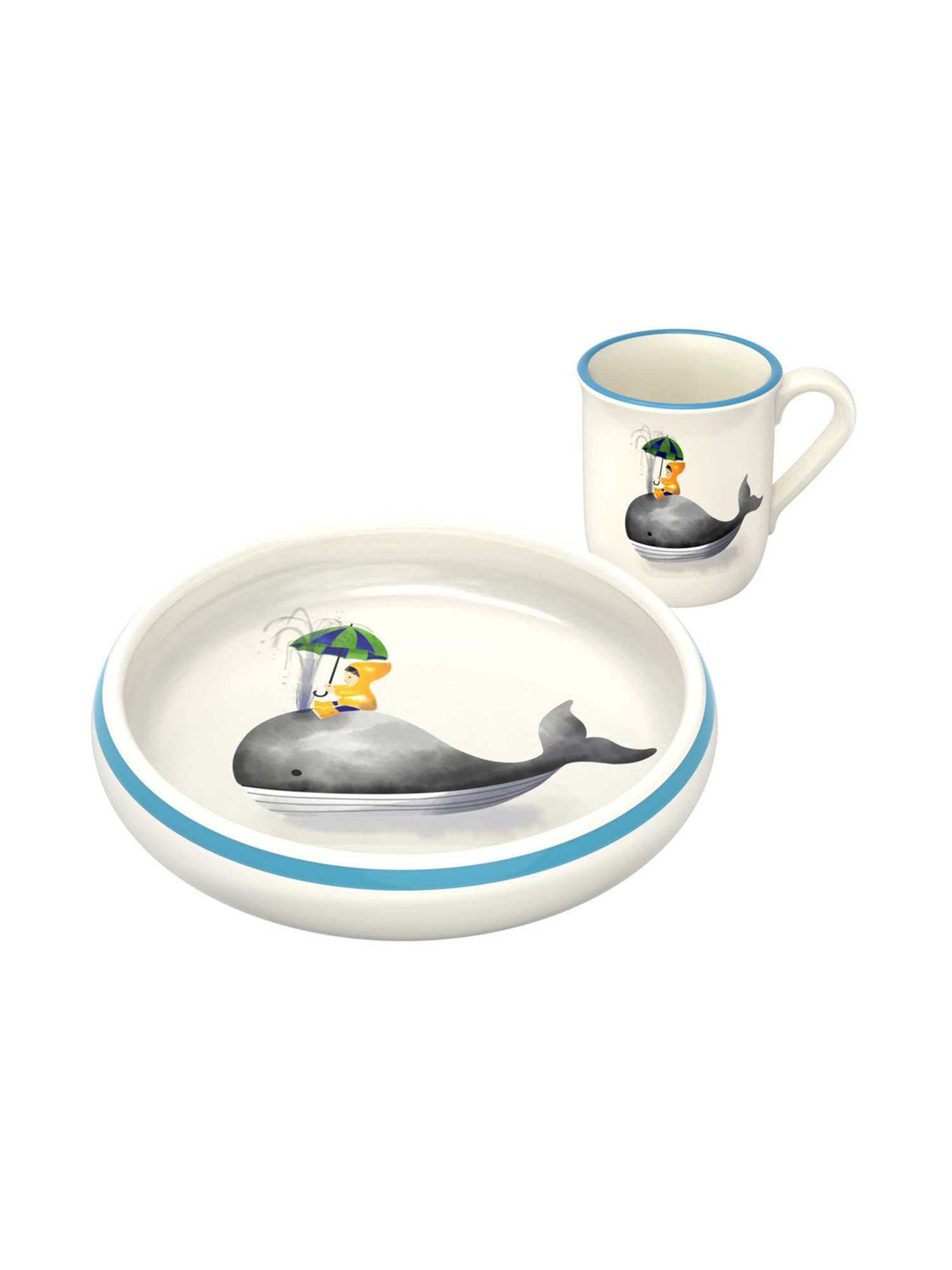 Avec ce set composé d'une assiette et d'une tasse, conçu avec amour, tu prends le temps d'admirer les petites merveilles du quotidien. L'enfant sur la grande tortue t'invite à t'arrêter, à t'étonner et à voir le monde avec des yeux curieux. Selon la devise : tu n'es jamais seul.