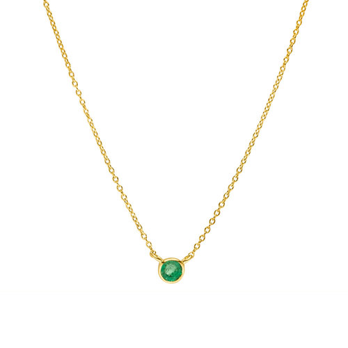 Ce collier élégant en or jaune 14 carats séduit par son pendentif délicat orné d’une émeraude, sertie dans un design rond et épuré. Réputée pour sa couleur vert profond, l’émeraude confère à ce bijou une touche de raffinement. Grâce à son design minimaliste, ce collier convient aussi bien au quotidien qu’aux occasions spéciales.