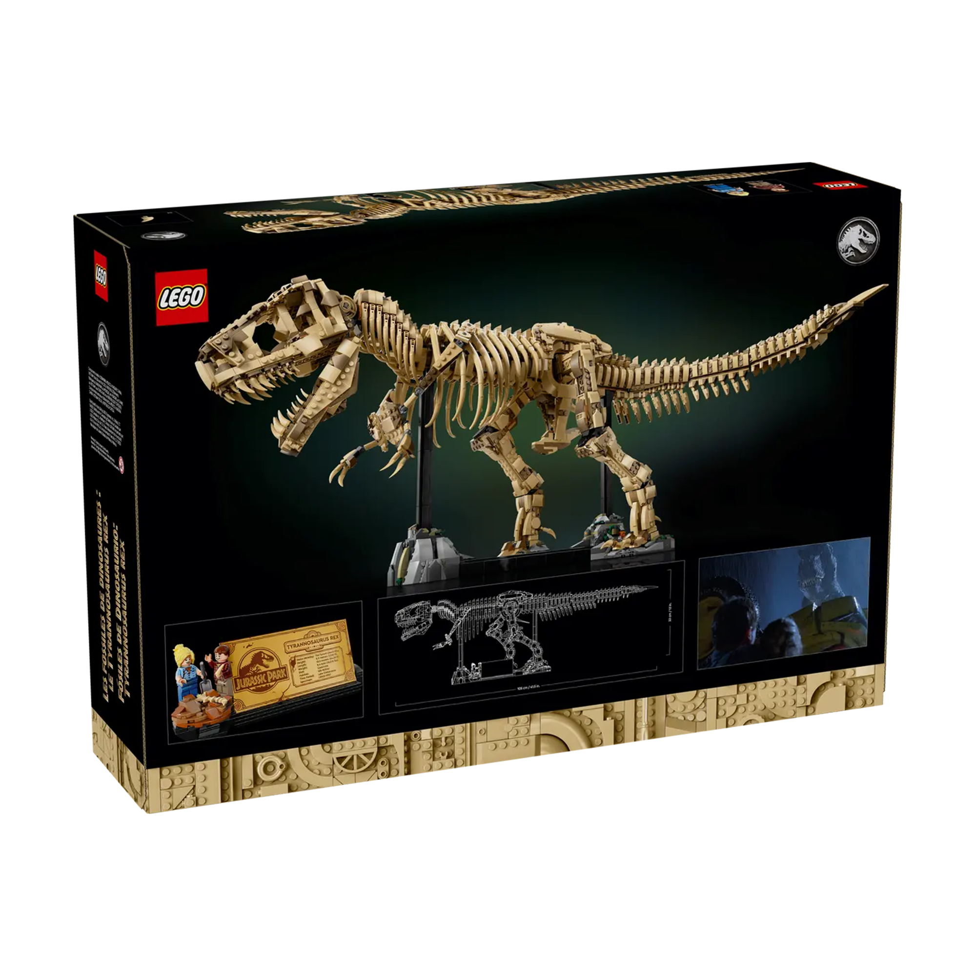 Plonge dans le monde des dinosaures avec le LEGO Dinosaur Fossils : Tyrannosaurus rex (76968). Cet ensemble de construction sophistiqué te permet de créer un squelette impressionnant à l'échelle 1:12, qui prend vie grâce à ses membres mobiles, Son crâne, sa mâchoire, sa queue et ses bras. Le modèle est parfaitement adapté à l'exposition et prend un véritable caractère de musée grâce à un panneau d'information et à des easter eggs cachés, comme le morceau d'ambre. Avec les minifigurines Ellie Sattler et Alan Grant, tu peux recréer des scènes de Jurassic Park et laisser libre cours à ta passion pour les géants préhistoriques.