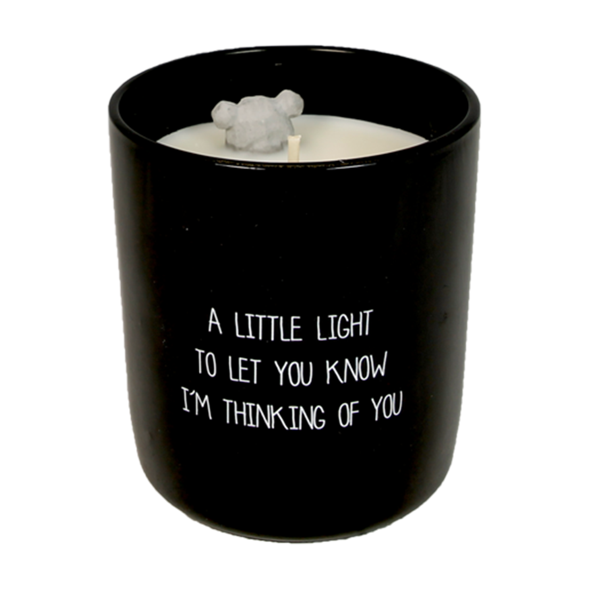 Pense à toi ! Avec la bougie de soja avec ours Thinking of you Black, tu envoies des salutations affectueuses et tu montres que tu penses à quelqu'un. Fabriquée à partir de cire de soja bio durable, cette bougie dégage le chaleureux parfum "Warm Cashmere" et brûle jusqu'à 50 heures.