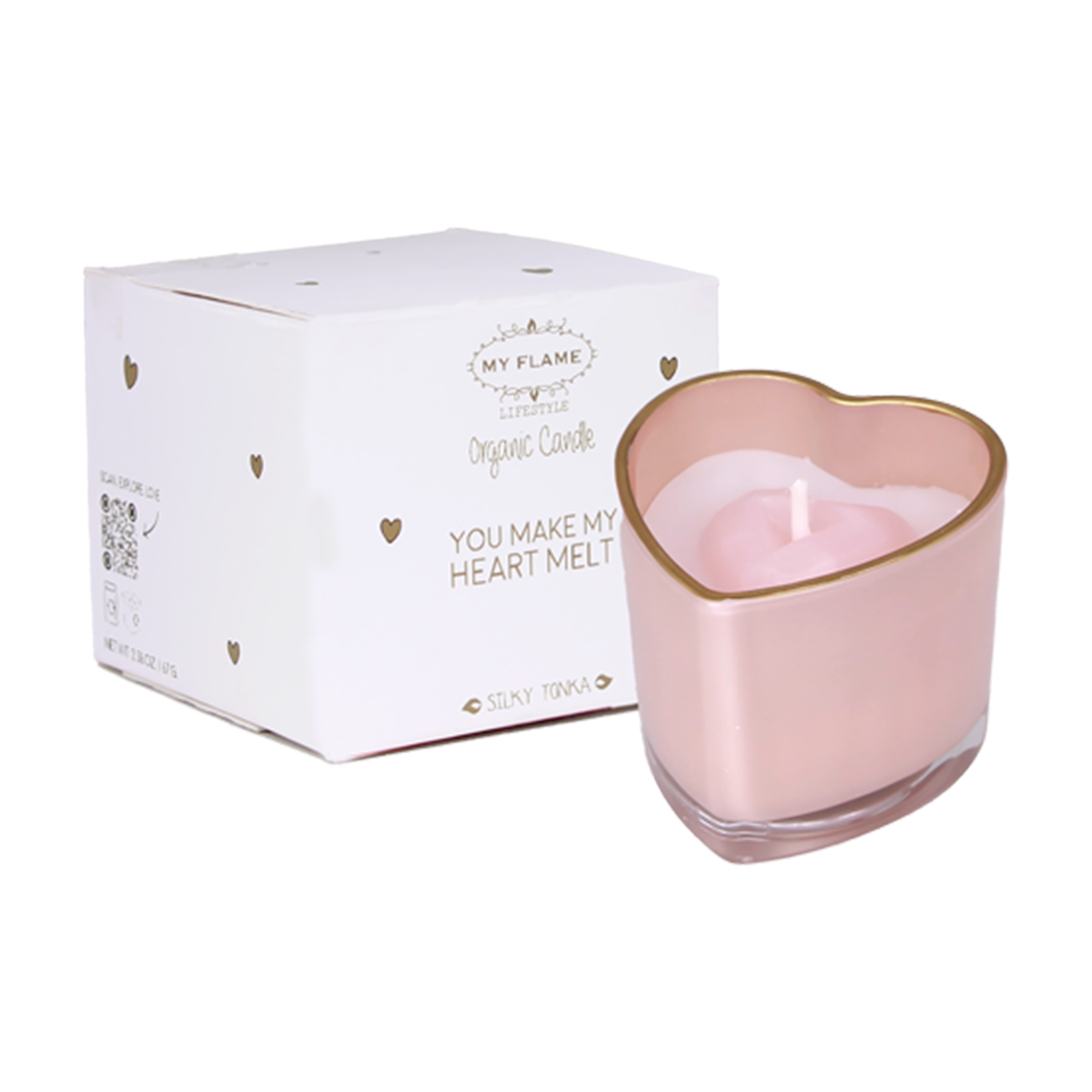 Bougie de soja dans un verre en forme de cœur You make my heart melt Pink