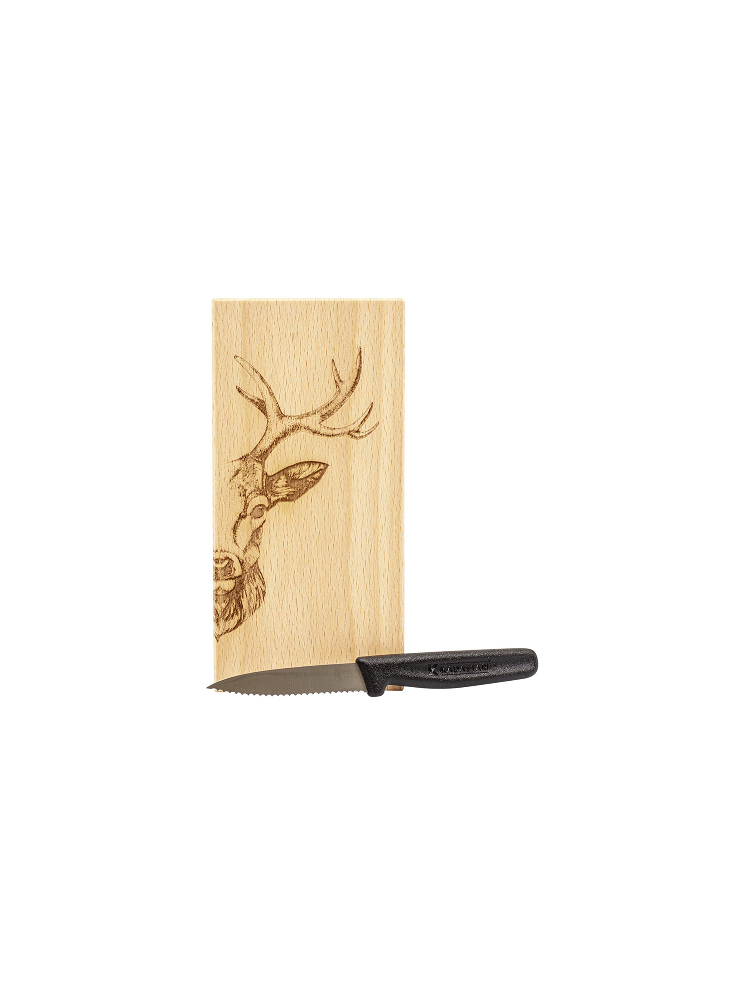 La planche à couteaux pratique en bois de hêtre de Kadastar se distingue par sa conception raffinée. Le dos de la planche est équipé d'une encoche et d'un support magnétique, permettant de fixer le couteau en toute sécurité. Le set comprend un couteau de coupe et est emballé dans un sac en lin pratique avec cordon de serrage.