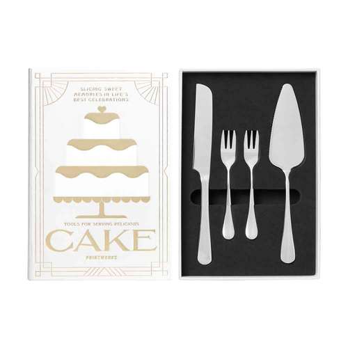 - Set comprenant : 1x spatule à gâteau, 1x couteau à gâteau, 6x fourchettes à dessert
