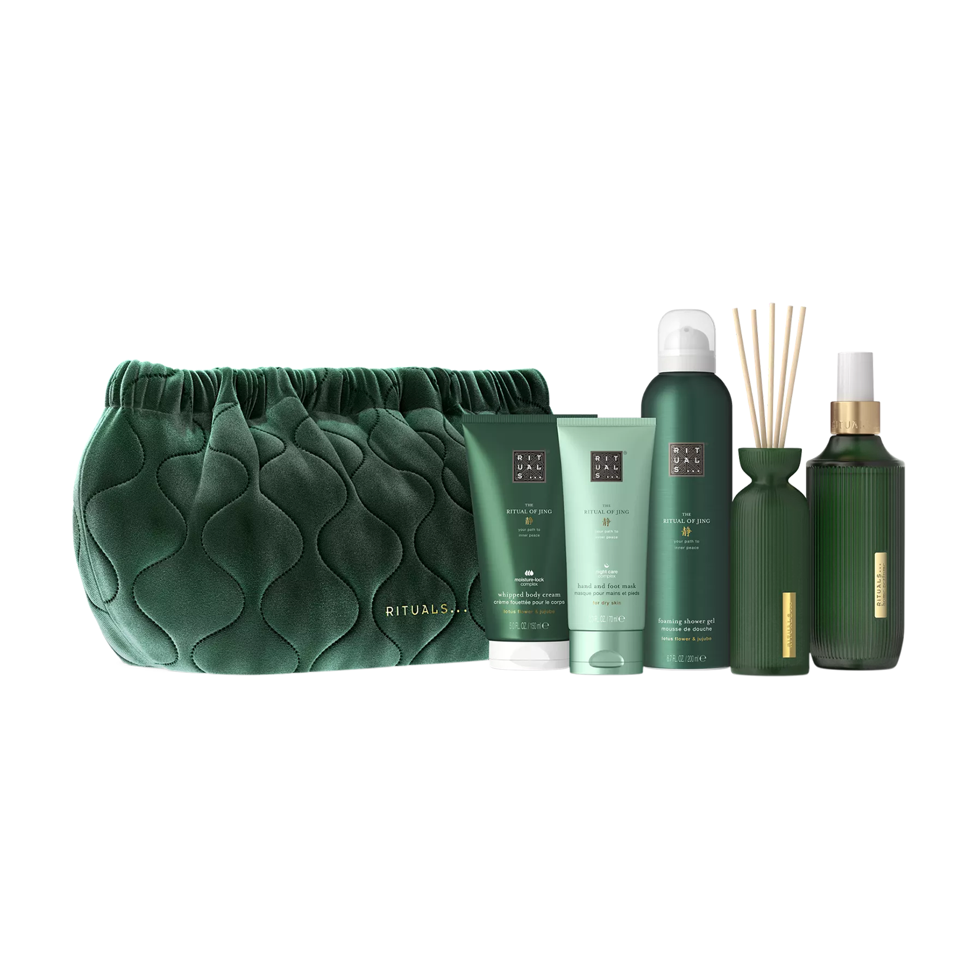 Offre-toi une pause avec ce luxueux set de Noël Jing Large de Rituals, qui te gâte avec les arômes apaisants du jujube et du lotus. Il est parfait pour commencer la journée de manière détendue le matin ou pour trouver le calme le soir. Le sac stylé fait de ce set le compagnon idéal en voyage ou comme pochette élégante pour donner à ta tenue le petit plus qui fait la différence. Laisse-toi dorloter par les produits de soin de haute qualité et crée de petits moments de bien-être au quotidien.