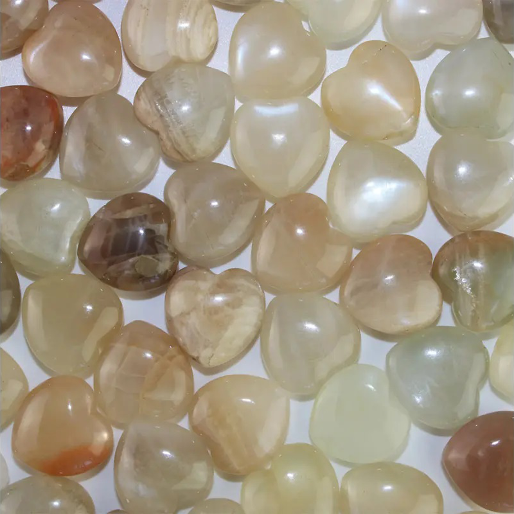 - Tu recevras 50 petits cœurs en pierre de lune, mesurant chacun environ 16x16x8 mm et pesant ensemble environ 140 grammes. - Ces fins cœurs minéraux sont une idée de cadeau affectueuse et naturelle aux doux reflets. - Parfaits comme décoration, porte-bonheur ou à offrir pour créer une atmosphère particulière.