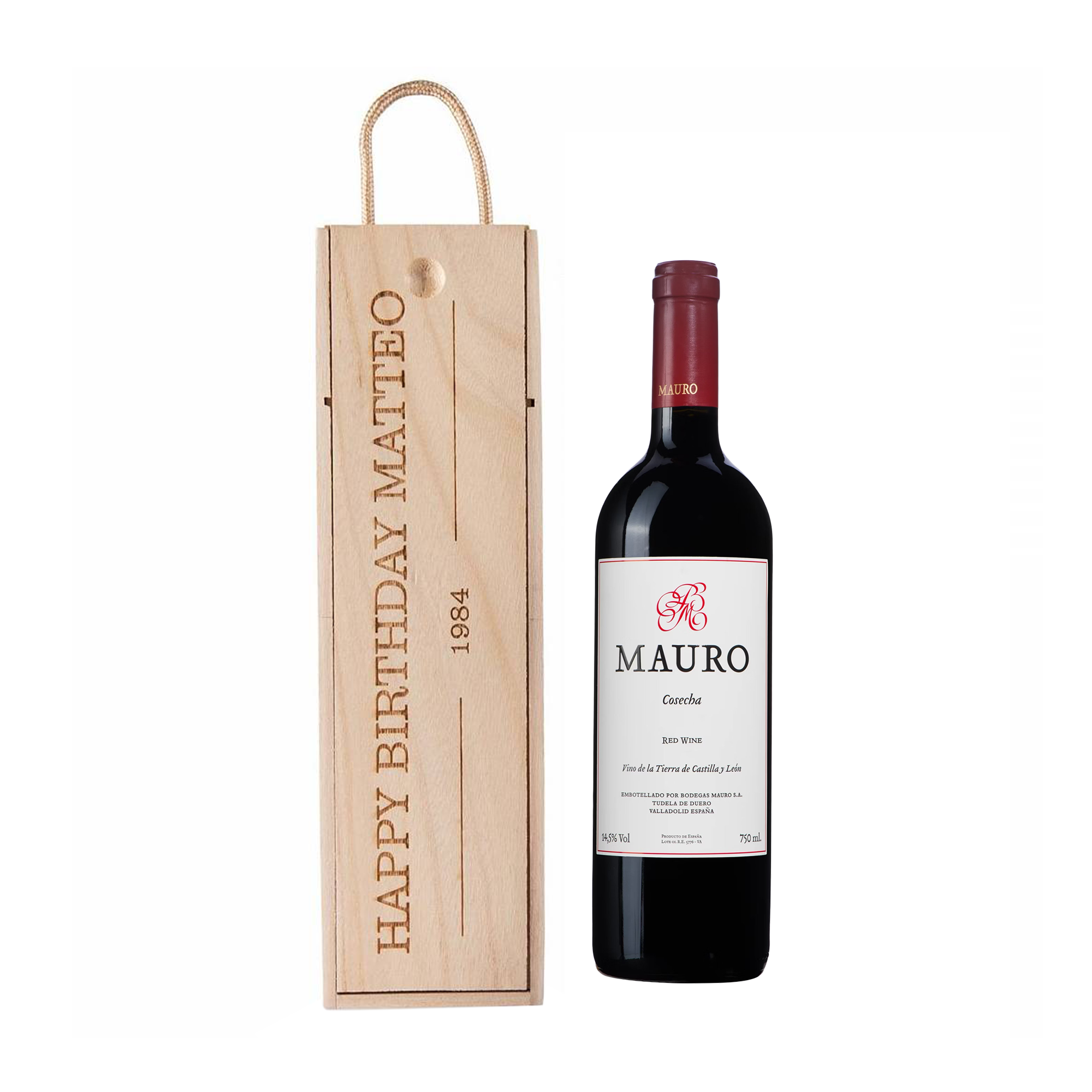 Offre un moment de plaisir particulier avec la caisse de vin personnalisable et le Mauro 2022. Le Mauro 2022 est un vin rouge puissant et élégant aux arômes intenses. Le pourpre impénétrable dans le verre promet une expérience gustative riche. Le nez dévoile d'opulents arômes de fruits noirs, des épices exotiques et une discrète note boisée. Le palais révèle des arômes de fruits riches et chaleureux, associés à des nuances minérales et à une structure élégante et précise. Le coffret en bois de qualité supérieure, que tu peux personnaliser avec une gravure , fait de ce coffret un cadeau unique pour toutes les occasions.