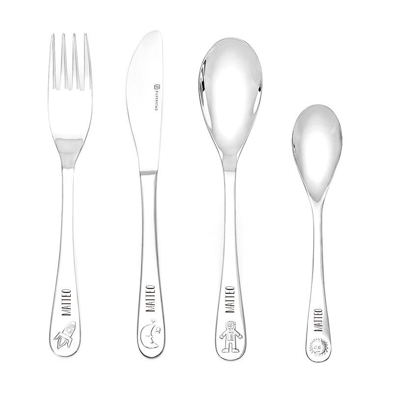 - Contenu : 1x fourchette, 1x couteau, 1x cuillère, 1x cuillère à dessert